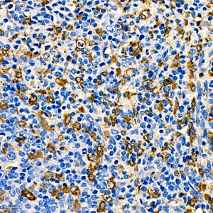 | IHC检测Heme Oxygenase 1蛋白(货号 GB11549). 样品: 大鼠脾, 4%多聚甲醛 (货号G1101) 固定12-24小时. 抗原修复: 柠檬酸抗原修复液(干粉, pH 6.0) (G1201), 98℃, 20分钟. —抗: 1: 600稀释, 4℃ 孵育过夜. 二抗: HRP标记山羊抗兔IgG (H+L) (货号GB23303), 1: 200稀释, 室温孵育1小时. |
