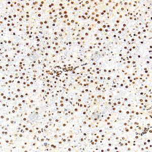 | IHC检测HMGB1蛋白(货号 GB15103). 样品: 大鼠肝, 4%多聚甲醛 (货号G1101) 固定12-24小时. 抗原修复: Tris-EDTA抗原修复液(pH 9.0) (G1203), 100℃, 25分钟. —抗: 1: 2000稀释, 4℃ 孵育过夜. 二抗: S-vision免疫组化多聚二抗(山羊抗兔),即用型 (货号G1302), 室温孵育20分钟. |