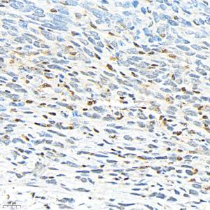 IHC检测p38蛋白(货号 GB154685). 样品: 小鼠4T1细胞皮下裸鼠模型, 4%多聚甲醛 (货号G1101) 固定12-24小时. 抗原修复: 柠檬酸抗原修复液(干粉, pH 6.0) (G1201), 高压锅均匀喷气计时2分钟. —抗: 1: 500稀释, 4℃ 孵育过夜. 二抗: HRP标记山羊抗兔IgG (H+L) (货号GB23303), 1: 200稀释, 室温孵育1小时. |