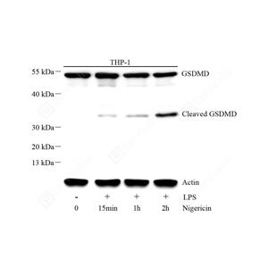 GSDMD is a member of the gasdermin family. Members of this family appear to play a role in regulation of epithelial proliferation. GSDMD has been suggested to act as a tumor suppressor. Recently, GSDMD is identified as a new component of inflammasomes, and it is an executor of pyroptosis and required for interleukin-1β secretion. Cleavage of GSDMD by inflammatory caspases determines pyroptotic cell death