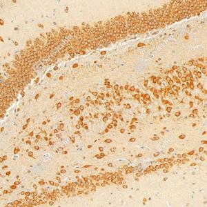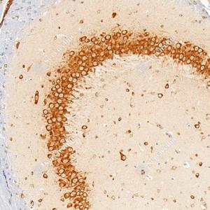 | IHC检测Hsp90蛋白(货号 GB150037). 样品: 小鼠海马区, 4%多聚甲醛 (货号G1101) 固定12-24小时. 抗原修复: Tris-EDTA抗原修复液(pH 9.0) (G1203), 98℃, 20分钟. —抗: 1: 1000稀释, 4℃ 孵育过夜. 二抗: S-vision免疫组化多聚二抗(山羊抗兔),即用型 (货号G1302), 室温孵育20分钟. |