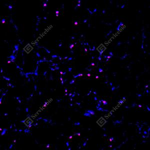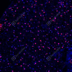 | IF检测PPAR gamma蛋白(货号 GB152205)(红色). 样品: 小鼠白色脂肪, 4%多聚甲醛 (货号G1101) 固定12-24小时. 抗原修复: Tris-EDTA抗原修复液(pH 9.0) (G1203), 100℃, 25分钟. 封闭: 3% BSA(货号GC305010)的PBS溶液, 室温孵育30分钟. —抗: 1: 5000稀释, 4℃ 孵育过夜. 二抗: Cy3标记山羊抗兔IgG (H+L) (货号GB21303), 1: 300稀释, 室温孵育1小时. |