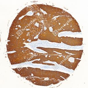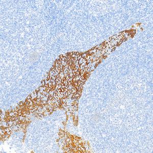 | IHC检测Cytokeratin 19蛋白(货号 GB15197). 样品: 人扁桃体, 4%多聚甲醛 (货号G1101) 固定12-24小时. 抗原修复: Tris-EDTA抗原修复液(pH 9.0) (G1203), 100℃, 25分钟. —抗: 1: 300稀释, 4℃ 孵育过夜. 二抗: S-vision免疫组化多聚二抗(山羊抗兔),即用型 (货号G1302), 室温孵育20分钟. |