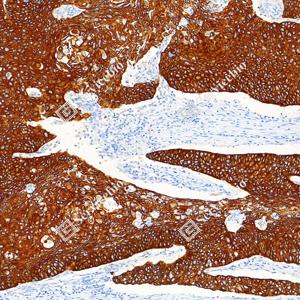 | IHC检测Cytokeratin 19蛋白(货号 GB15197). 样品: 人食管癌, 4%多聚甲醛 (货号G1101) 固定12-24小时. 抗原修复: Tris-EDTA抗原修复液(pH 9.0) (G1203), 100℃, 25分钟. —抗: 1: 450稀释, 4℃ 孵育过夜. 二抗: S-vision免疫组化多聚二抗(山羊抗兔),即用型 (货号G1302), 室温孵育20分钟. |