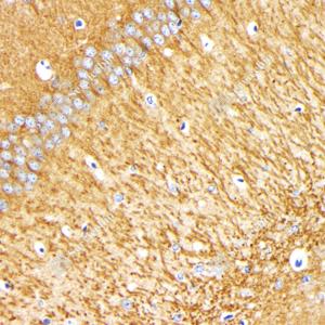 IHC检测MAP2蛋白(货号 GB115559). 样品: 大鼠脑, 4%多聚甲醛 (货号G1101) 固定12-24小时. 抗原修复: 柠檬酸抗原修复液(干粉, pH 6.0) (G1201), 98℃, 20分钟. —抗: 1: 1000稀释, 4℃ 孵育过夜. 二抗: HRP标记山羊抗兔IgG (H+L) (货号GB23303), 1: 200稀释, 室温孵育1小时. |