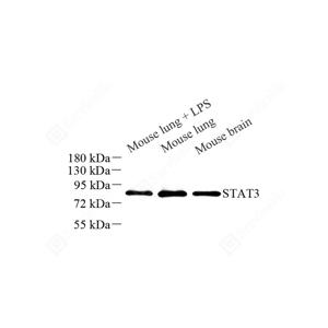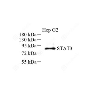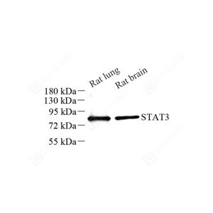 WB检测STAT3蛋白(货号 GB11176). 样品: 经RIPA裂解液(货号G2002)处理的蛋白质. 封闭: 封闭: 3%脱脂牛奶(货号GC310001)溶于TBST溶液, 室温孵育1小时. —抗: 1: 500稀释, 4℃ 孵育过夜. 二抗: HRP标记山羊抗兔IgG (H+L) (货号GB23303), 1: 5000稀释, 室温孵育1小时. |
