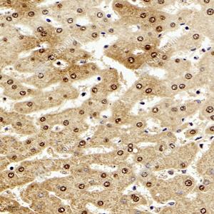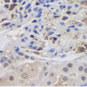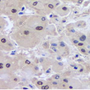 IHC检测CREB蛋白(货号 GB11236). 样品: 人肝, 4%多聚甲醛 (货号G1101) 固定12-24小时. 抗原修复: 柠檬酸抗原修复液(干粉, pH 6.0) (G1201), 98℃, 20分钟. —抗: 1: 1000稀释, 4℃ 孵育过夜. 二抗: HRP标记山羊抗兔IgG (H+L) (货号GB23303), 1: 200稀释, 室温孵育1小时. |