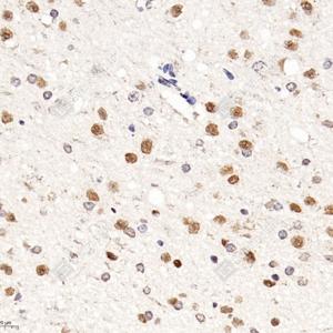 IHC检测TDP43蛋白(货号 GB112160). 样品: 大鼠脑, 4%多聚甲醛 (货号G1101) 固定12-24小时. 抗原修复: Tris-EDTA抗原修复液(pH 9.0) (G1203), 98℃, 20分钟. —抗: 1: 200稀释, 4℃ 孵育过夜. 二抗: HRP标记山羊抗兔IgG (H+L) (货号GB23303), 1: 200稀释, 室温孵育1小时. |