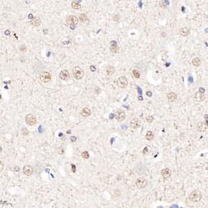 IHC检测TDP43蛋白(货号 GB112160). 样品: 小鼠脑, 4%多聚甲醛 (货号G1101) 固定12-24小时. 抗原修复: Tris-EDTA抗原修复液(pH 9.0) (G1203), 98℃, 20分钟. —抗: 1: 200稀释, 4℃ 孵育过夜. 二抗: HRP标记山羊抗兔IgG (H+L) (货号GB23303), 1: 200稀释, 室温孵育1小时. |