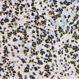 | IHC检测TDP43蛋白(货号 GB115547). 样品: 小鼠睾丸, 4%多聚甲醛 (货号G1101) 固定12-24小时. 抗原修复: Tris-EDTA抗原修复液(pH 9.0) (G1203), 98℃, 20分钟. —抗: 1: 100稀释, 4℃ 孵育过夜. 二抗: HRP标记山羊抗兔IgG (H+L) (货号GB23303), 1: 200稀释, 室温孵育1小时. |