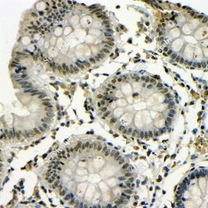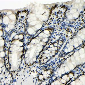 | IHC检测TDP43蛋白(货号 GB115547). 样品: 大鼠结肠, 4%多聚甲醛 (货号G1101) 固定12-24小时. 抗原修复: Tris-EDTA抗原修复液(pH 9.0) (G1203), 98℃, 20分钟. —抗: 1: 100稀释, 4℃ 孵育过夜. 二抗: HRP标记山羊抗兔IgG (H+L) (货号GB23303), 1: 200稀释, 室温孵育1小时. |