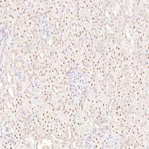 IHC检测TORC1蛋白(货号 GB112935). 样品: 大鼠肾, 4%多聚甲醛 (货号G1101) 固定12-24小时. 抗原修复: 柠檬酸抗原修复液(干粉, pH 6.0) (G1201), 98℃, 20分钟. —抗: 1: 400稀释, 4℃ 孵育过夜. 二抗: HRP标记山羊抗兔IgG (H+L) (货号GB23303), 1: 200稀释, 室温孵育1小时. |