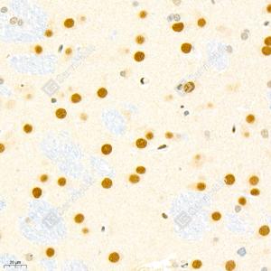 IHC检测MEF2A蛋白(货号 GB11965). 样品: 大鼠脑, 4%多聚甲醛 (货号G1101) 固定12-24小时. 抗原修复: 柠檬酸抗原修复液(干粉, pH 6.0) (G1201), 98℃, 20分钟. —抗: 1: 400稀释, 4℃ 孵育过夜. 二抗: HRP标记山羊抗兔IgG (H+L) (货号GB23303), 1: 200稀释, 室温孵育1小时. |