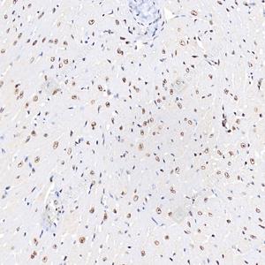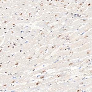 IHC检测RING1蛋白(货号 GB112531). 样品: 小鼠心, 4%多聚甲醛 (货号G1101) 固定12-24小时. 抗原修复: Tris-EDTA抗原修复液(pH 9.0) (G1203), 98℃, 20分钟. —抗: 1: 3600稀释, 4℃ 孵育过夜. 二抗: HRP标记山羊抗兔IgG (H+L) (货号GB23303), 1: 200稀释, 室温孵育1小时. |