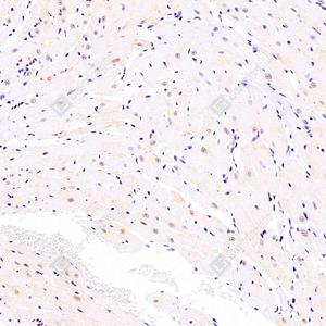 IHC检测SRFBP1蛋白(货号 GB112788). 样品: 大鼠心, 4%多聚甲醛 (货号G1101) 固定12-24小时. 抗原修复: 柠檬酸抗原修复液(干粉, pH 6.0) (G1201), 98℃, 20分钟. —抗: 1: 2000稀释, 4℃ 孵育过夜. 二抗: HRP标记山羊抗兔IgG (H+L) (货号GB23303), 1: 200稀释, 室温孵育1小时. |