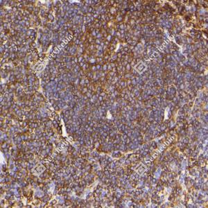 | IHC检测beta Actin蛋白(货号 GB15003). 样品: 小鼠脾, 4%多聚甲醛 (货号G1101) 固定12-24小时. 抗原修复: 柠檬酸抗原修复液(干粉, pH 6.0) (G1201), 高压锅均匀喷气计时2分钟. —抗: 1: 500稀释, 4℃ 孵育过夜. 二抗: HRP标记山羊抗兔IgG (H+L) (货号GB23303), 1: 200稀释, 室温孵育1小时. |