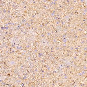 | IHC检测GAPDH蛋白(货号 GB15002). 样品: 大鼠脊髓, 4%多聚甲醛 (货号G1101) 固定12-24小时. 抗原修复: 柠檬酸抗原修复液(干粉, pH 6.0) (G1201), 高压锅均匀喷气计时2分钟. —抗: 1: 1000稀释, 4℃ 孵育过夜. 二抗: HRP标记山羊抗小鼠IgG (H+L) (货号GB23301), 1: 200稀释, 室温孵育1小时. |