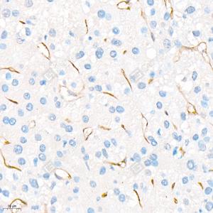 IHC检测CD31蛋白(货号 GB12064). 样品: 人肝癌, 4%多聚甲醛 (货号G1101) 固定12-24小时. 抗原修复: 柠檬酸抗原修复液(干粉, pH 6.0) (G1201), 高压锅均匀喷气计时2分钟. —抗: 1: 300稀释, 4℃ 孵育过夜. 二抗: HRP标记山羊抗小鼠IgG (H+L) (货号GB23301), 1: 200稀释, 室温孵育1小时. |