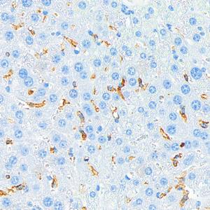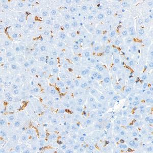 IHC检测F4/80蛋白(货号 GB12027). 样品: 小鼠肝, 4%多聚甲醛 (货号G1101) 固定12-24小时. 抗原修复: 柠檬酸抗原修复液(干粉, pH 6.0) (G1201), 高压锅均匀喷气计时2分钟. —抗: 1: 1000稀释, 4℃ 孵育过夜. 二抗: HRP标记山羊抗大鼠IgG (H+L) (货号GB23302), 1: 200稀释, 室温孵育1小时. |