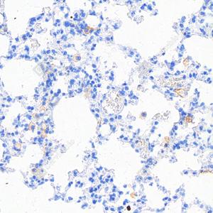 IHC检测F4/80蛋白(货号 GB12027). 样品: 小鼠LPS诱导(24h)肺部炎症模型, 4%多聚甲醛 (货号G1101) 固定12-24小时. 抗原修复: 柠檬酸抗原修复液(干粉, pH 6.0) (G1201), 高压锅均匀喷气计时2分钟. —抗: 1: 1000稀释, 4℃ 孵育过夜. 二抗: HRP标记山羊抗大鼠IgG (H+L) (货号GB23302), 1: 200稀释, 室温孵育1小时. |
