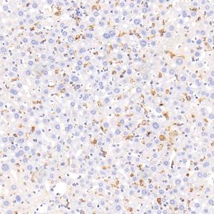 IHC检测F4/80蛋白(货号 GB113373). 样品: 小鼠脂多糖24小时肝脏, 4%多聚甲醛 (货号G1101) 固定12-24小时. 抗原修复: 柠檬酸抗原修复液(干粉, pH 6.0) (G1201), 98℃, 20分钟. —抗: 1: 500稀释, 4℃ 孵育过夜. 二抗: HRP标记山羊抗兔IgG (H+L) (货号GB23303), 1: 200稀释, 室温孵育1小时. |