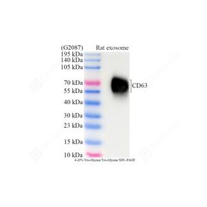 | WB检测CD63蛋白(货号 GB15620). 样品: 经RIPA裂解液(货号G2002)处理的蛋白质. 封闭: 3%脱脂牛奶(货号GC310001)溶于TBST溶液, 室温孵育1小时. —抗: 1: 700稀释, 4℃ 孵育过夜. 二抗: HRP标记山羊抗兔IgG (H+L) (货号GB23303), 1: 5000稀释, 室温孵育1小时. |