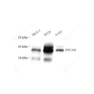 | WB 免疫印迹 | 人 | 1: 1000-1: 2000 | MCF-7细胞, HT29细胞, A-431细胞 |