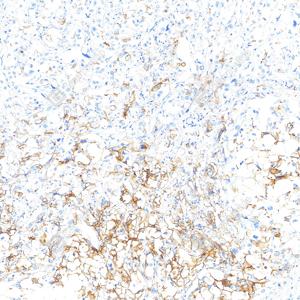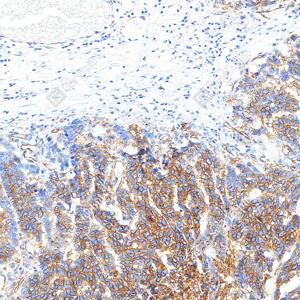 | IHC检测ICAM1蛋白(货号 GB150141). 样品: 人肝胆癌, 4%多聚甲醛 (货号G1101) 固定12-24小时. 抗原修复: 抗原修复仪 (货号 ARI-4),Tris-EDTA抗原修复液(pH 9.0) (货号G1203), 水浴100℃, 25分钟. —抗: 1: 1500稀释, 4℃ 孵育过夜. 二抗: S-vision免疫组化多聚二抗(山羊抗小鼠), 即用型(货号G1301), 室温孵育20分钟. |