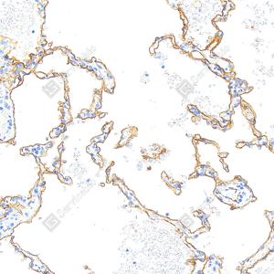 | IHC检测ICAM1蛋白(货号 GB150141). 样品: 人肺, 4%多聚甲醛 (货号G1101) 固定12-24小时. 抗原修复: 抗原修复仪 (货号 ARI-4),Tris-EDTA抗原修复液(pH 9.0) (货号G1203), 水浴100℃, 25分钟. —抗: 1: 1000稀释, 4℃ 孵育过夜. 二抗: S-vision免疫组化多聚二抗(山羊抗小鼠), 即用型(货号G1301), 室温孵育20分钟. |