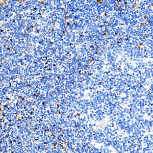| IHC检测YAP1蛋白(货号 GB153975). 样品: 人扁桃体, 4%多聚甲醛 (货号G1101) 固定12-24小时. 抗原修复: Tris-EDTA抗原修复液(pH 9.0) (G1203), 100℃, 25分钟. —抗: 1: 3000稀释, 4℃ 孵育过夜. 二抗: S-vision免疫组化多聚二抗(山羊抗兔),即用型 (货号G1302), 室温孵育20分钟. |