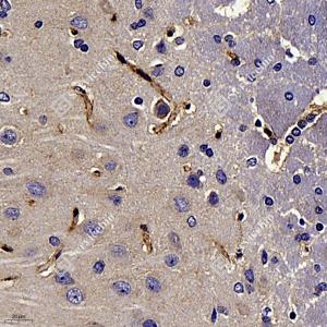 | IHC检测Aquaporin 4蛋白(货号 GB11311-1). 样品: 大鼠脑, 4%多聚甲醛 (货号G1101) 固定12-24小时. 抗原修复: 柠檬酸抗原修复液(干粉, pH 6.0) (G1201), 98℃, 20分钟. —抗: 1: 1000稀释, 4℃ 孵育过夜. 二抗: HRP标记山羊抗兔IgG (H+L) (货号GB23303), 1: 200稀释, 室温孵育1小时. |