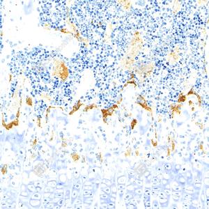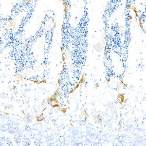 | IHC检测Tartrate Resistant Acid Phosphatase蛋白(货号 GB15416). 样品: 小鼠骨, 4%多聚甲醛 (货号G1101) 固定12-24小时. 抗原修复: Tris-EDTA抗原修复液(pH 9.0) (G1203), 98℃, 20分钟. —抗: 1: 1000稀释, 4℃ 孵育过夜. 二抗: S-vision免疫组化多聚二抗(山羊抗小鼠), 即用型(货号G1301), 室温孵育20分钟. |