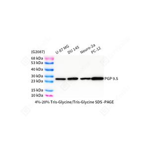 UCHL1(Ubiquitin carboxyl-terminal hydrolase isozyme L1) is a member of a gene family whose products hydrolyze small C-terminal adducts of ubiquitin to generate the ubiquitin monomer. Expression of UCHL1 is highly specific to neurons and to cells of the diffuse neuroendocrine system and their tumors. It is present in all neurons. This protein is present in brain at concentrations at least 50 times greater than in other organs and is a major protein component of neuronal cytoplasm . And UCHL1 is a Parkinson's disease susceptibility gene.
