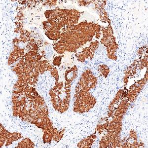 | IHC检测PGP9. 5蛋白(货号 GB150181). 样品: 人嗅觉神经母细胞瘤, 4%多聚甲醛 (货号G1101) 固定12-24小时. 抗原修复: 抗原修复仪(货号 ARI-4),Tris-EDTA抗原修复液(pH 9.0) (货号G1203), 水浴100℃, 25分钟. —抗: 1: 1000稀释, 4℃ 孵育过夜. 二抗: S-vision免疫组化多聚二抗(山羊抗小鼠), 即用型(货号G1301), 室温孵育20分钟. |