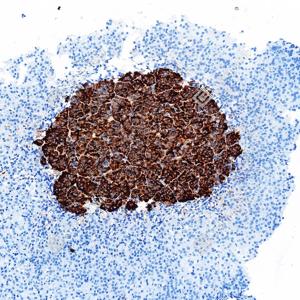 | IHC检测PGP9. 5蛋白(货号 GB150181). 样品: 小鼠肾上腺, 4%多聚甲醛 (货号G1101) 固定12-24小时. 抗原修复: 抗原修复仪(货号 ARI-4),Tris-EDTA抗原修复液(pH 9.0) (货号G1203), 水浴100℃, 25分钟. —抗: 1: 1000稀释, 4℃ 孵育过夜. 二抗: S-vision免疫组化多聚二抗(山羊抗小鼠), 即用型(货号G1301), 室温孵育20分钟. |
