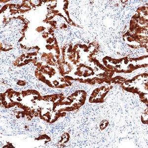 | IHC检测PGP9. 5蛋白(货号 GB150176). 样品: 人肺癌, 4%多聚甲醛 (货号G1101) 固定12-24小时. 抗原修复: 抗原修复仪(货号 ARI-4), Tris-EDTA抗原修复液(pH 9.0) (货号G1203), 水浴100℃, 25分钟. —抗: 1: 300稀释, 4℃ 孵育过夜. 二抗: S-vision免疫组化多聚二抗(山羊抗兔),即用型 (货号G1302), 室温孵育20分钟. |