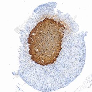 | IHC检测PGP9. 5蛋白(货号 GB150176). 样品: 大鼠胰腺, 4%多聚甲醛 (货号G1101) 固定12-24小时. 抗原修复: 抗原修复仪(货号 ARI-4), Tris-EDTA抗原修复液(pH 9.0) (货号G1203), 水浴100℃, 25分钟. —抗: 1: 300稀释, 4℃ 孵育过夜. 二抗: S-vision免疫组化多聚二抗(山羊抗兔),即用型 (货号G1302), 室温孵育20分钟. |