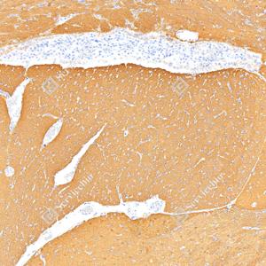 | IHC检测PGP9. 5蛋白(货号 GB150176). 样品: 小鼠脑, 4%多聚甲醛 (货号G1101) 固定12-24小时. 抗原修复: 抗原修复仪(货号 ARI-4), Tris-EDTA抗原修复液(pH 9.0) (货号G1203), 水浴100℃, 25分钟. —抗: 1: 300稀释, 4℃ 孵育过夜. 二抗: S-vision免疫组化多聚二抗(山羊抗兔),即用型 (货号G1302), 室温孵育20分钟. |