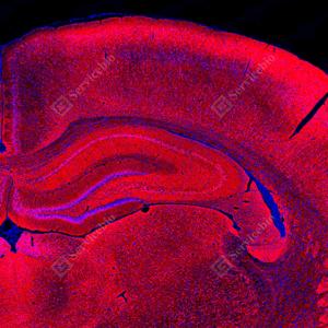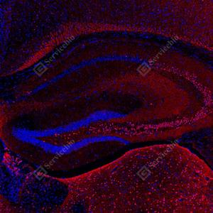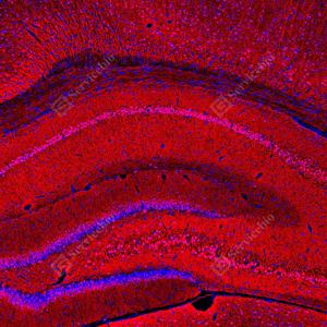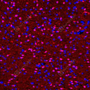 | IF检测PGP9. 5蛋白(货号 GB150176)(红色). 样品: 大鼠脑, 4%多聚甲醛 (货号G1101) 固定12-24小时. 抗原修复: 抗原修复仪(货号 ARI-4), Tris-EDTA抗原修复液(pH 9.0) (货号G1203), 水浴100℃, 25分钟. 封闭: 3% BSA(货号GC305010)的PBS溶液, 室温孵育30分钟. —抗: 1: 300稀释, 4℃ 孵育过夜. 二抗: Cy3标记山羊抗兔IgG (H+L) (货号GB21303), 1: 300稀释, 室温孵育1小时. |