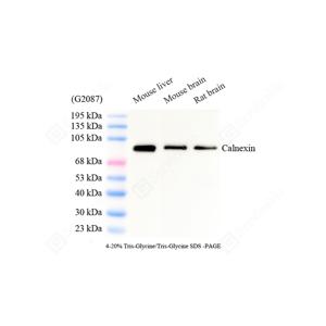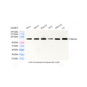 | WB检测Calnexin蛋白(货号 GB151369). 样品: 经RIPA裂解液(货号G2002)处理的蛋白质. 封闭: 3%脱脂牛奶(货号GC310001)溶于TBST溶液, 室温孵育1小时. —抗: 1: 1000稀释, 4℃ 孵育过夜. 二抗: HRP标记山羊抗小鼠IgG (H+L) (货号GB23301), 1: 5000稀释, 室温孵育1小时. |
