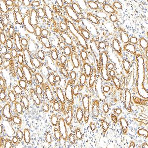 | IHC检测Calnexin蛋白(货号 GB151369). 样品: 小鼠肾, 4%多聚甲醛 (货号G1101) 固定12-24小时. 抗原修复: Tris-EDTA抗原修复液(pH 9.0) (G1203), 100℃, 25分钟. —抗: 1: 500稀释, 4℃ 孵育过夜. 二抗: S-vision免疫组化多聚二抗(山羊抗小鼠), 即用型(货号G1301), 室温孵育20分钟. |