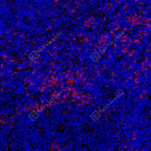 | IF检测Calnexin蛋白(货号 GB151369)(红色). 样品: 人扁桃体, 4%多聚甲醛 (货号G1101) 固定12-24小时. 抗原修复: Tris-EDTA抗原修复液(pH 9.0) (G1203), 100℃, 25分钟. 封闭: 3% BSA(货号GC305010)的PBS溶液, 室温孵育30分钟. —抗: 1: 500稀释, 4℃ 孵育过夜. 二抗: Cy3标记山羊抗小鼠IgG (H+L) (货号GB21301), 1: 300稀释, 室温孵育1小时. |