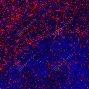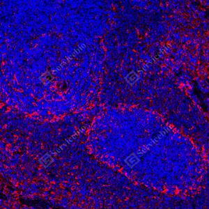 | IF检测Calnexin蛋白(货号 GB151369)(红色). 样品: 小鼠脾, 4%多聚甲醛 (货号G1101) 固定12-24小时. 抗原修复: Tris-EDTA抗原修复液(pH 9.0) (G1203), 100℃, 25分钟. 封闭: 3% BSA(货号GC305010)的PBS溶液, 室温孵育30分钟. —抗: 1: 500稀释, 4℃ 孵育过夜. 二抗: Cy3标记山羊抗小鼠IgG (H+L) (货号GB21301), 1: 300稀释, 室温孵育1小时. |