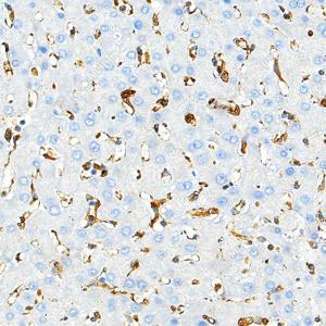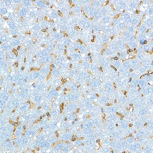 IHC检测TMEM173蛋白(货号 GB150063). 样品: 小鼠脂多糖诱导炎症模型(24小时)肝脏, 4%多聚甲醛 (货号G1101) 固定12-24小时. 抗原修复: 柠檬酸抗原修复液 (干粉, pH 6.0) (G1201), 高压锅均匀喷气计时2分钟. —抗: 1: 1000稀释, 4℃ 孵育过夜. 二抗: S-vision免疫组化多聚二抗(山羊抗兔),即用型 (货号G1302), 室温孵育20分钟. |