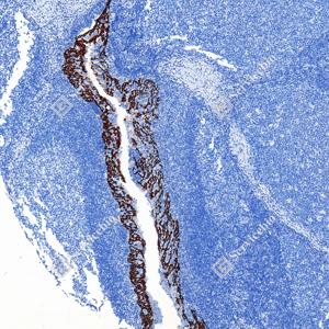 | IHC检测Cytokeratin 14蛋白(货号 GB150146). 样品: 人扁桃体, 4%多聚甲醛 (货号G1101) 固定12-24小时. 抗原修复: 抗原修复仪 (货号 ARI-4),Tris-EDTA抗原修复液(pH 9.0) (货号G1203), 水浴100℃, 25分钟. —抗: 1: 500稀释, 4℃ 孵育过夜. 二抗: S-vision免疫组化多聚二抗(山羊抗兔),即用型 (货号G1302), 室温孵育20分钟. |