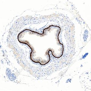| IHC检测Cytokeratin 14蛋白(货号 GB150146). 样品: 大鼠皮肤, 4%多聚甲醛 (货号G1101) 固定12-24小时. 抗原修复: 抗原修复仪 (货号 ARI-4),Tris-EDTA抗原修复液(pH 9.0) (货号G1203), 水浴100℃, 25分钟. —抗: 1: 500稀释, 4℃ 孵育过夜. 二抗: S-vision免疫组化多聚二抗(山羊抗兔),即用型 (货号G1302), 室温孵育20分钟. |