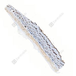 | IHC检测Cytokeratin 14蛋白(货号 GB150146). 样品: 小鼠皮肤, 4%多聚甲醛 (货号G1101) 固定12-24小时. 抗原修复: 抗原修复仪 (货号 ARI-4),Tris-EDTA抗原修复液(pH 9.0) (货号G1203), 水浴100℃, 25分钟. —抗: 1: 500稀释, 4℃ 孵育过夜. 二抗: S-vision免疫组化多聚二抗(山羊抗兔),即用型 (货号G1302), 室温孵育20分钟. |