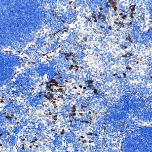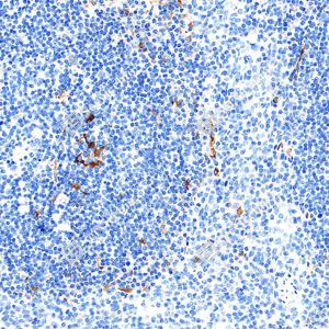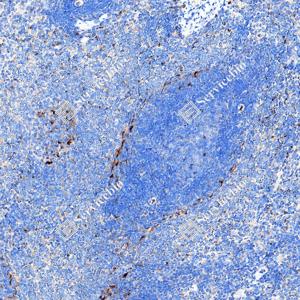 | IHC检测NQO1蛋白(货号 GB15282). 样品: 小鼠脾, 4%多聚甲醛 (货号G1101) 固定12-24小时. 抗原修复: Tris-EDTA抗原修复液(pH 9.0) (G1203), 100℃, 25分钟. —抗: 1: 1000稀释, 4℃ 孵育过夜. 二抗: S-vision免疫组化多聚二抗(山羊抗兔),即用型 (货号G1302), 室温孵育20分钟. |