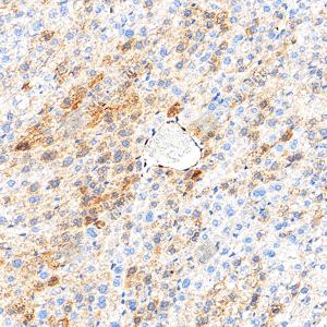 | IHC检测NQO1蛋白(货号 GB15282). 样品: 小鼠肝, 4%多聚甲醛 (货号G1101) 固定12-24小时. 抗原修复: Tris-EDTA抗原修复液(pH 9.0) (G1203), 100℃, 25分钟. —抗: 1: 1000稀释, 4℃ 孵育过夜. 二抗: S-vision免疫组化多聚二抗(山羊抗兔),即用型 (货号G1302), 室温孵育20分钟. |