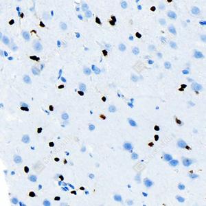IHC检测SOX2蛋白(货号 GB15249). 样品: 小鼠脑, 4%多聚甲醛 (货号G1101) 固定12-24小时. 抗原修复: 柠檬酸抗原修复液 (干粉, pH 6.0) (G1201), 高压锅均匀喷气计时2分钟. —抗: 1: 1000稀释, 4℃ 孵育过夜. 二抗: S-vision免疫组化多聚二抗(山羊抗兔),即用型 (货号G1302), 室温孵育20分钟. |